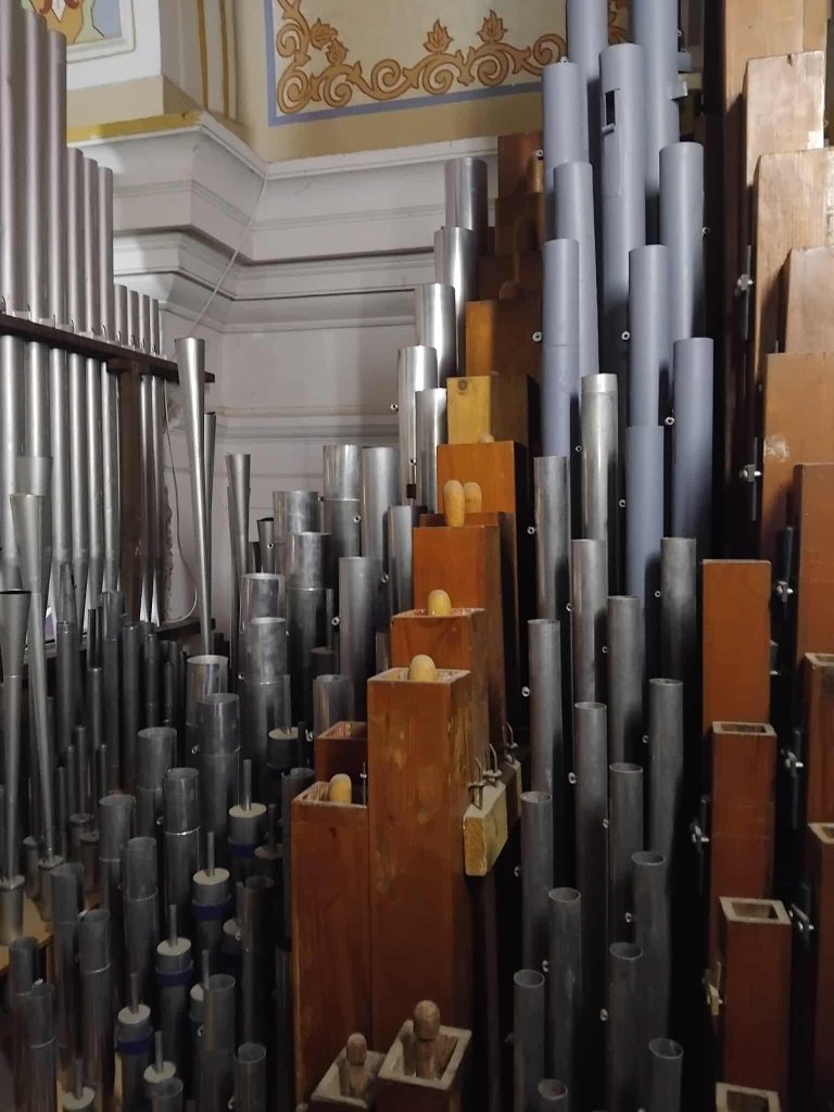 Ezután Szatmári Imre nyugalmazott kántor megengedte hogy betekintsünk az orgona belsejébe, elmesélte annak működését és játszott is nekünk.
