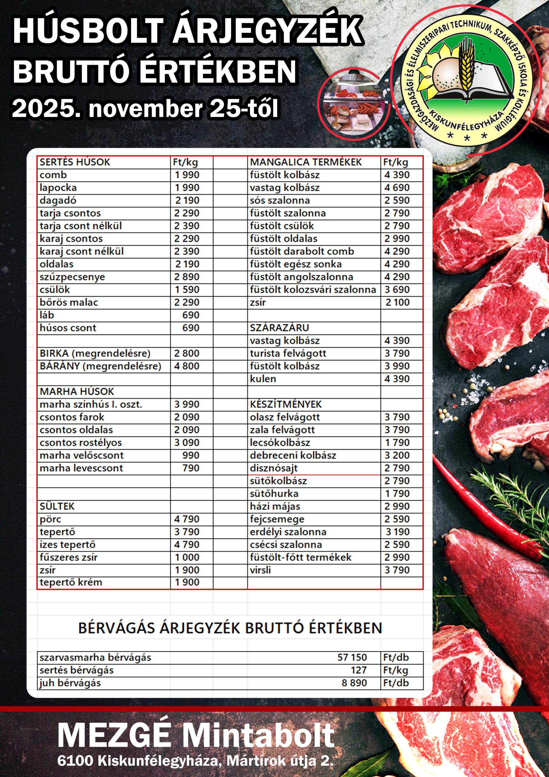 Iskolánk üzlete – a MEZGÉ Mintabolt – a város szívében (6100 Kiskunfélegyháza, Mártírok útja 2.) üzemel.