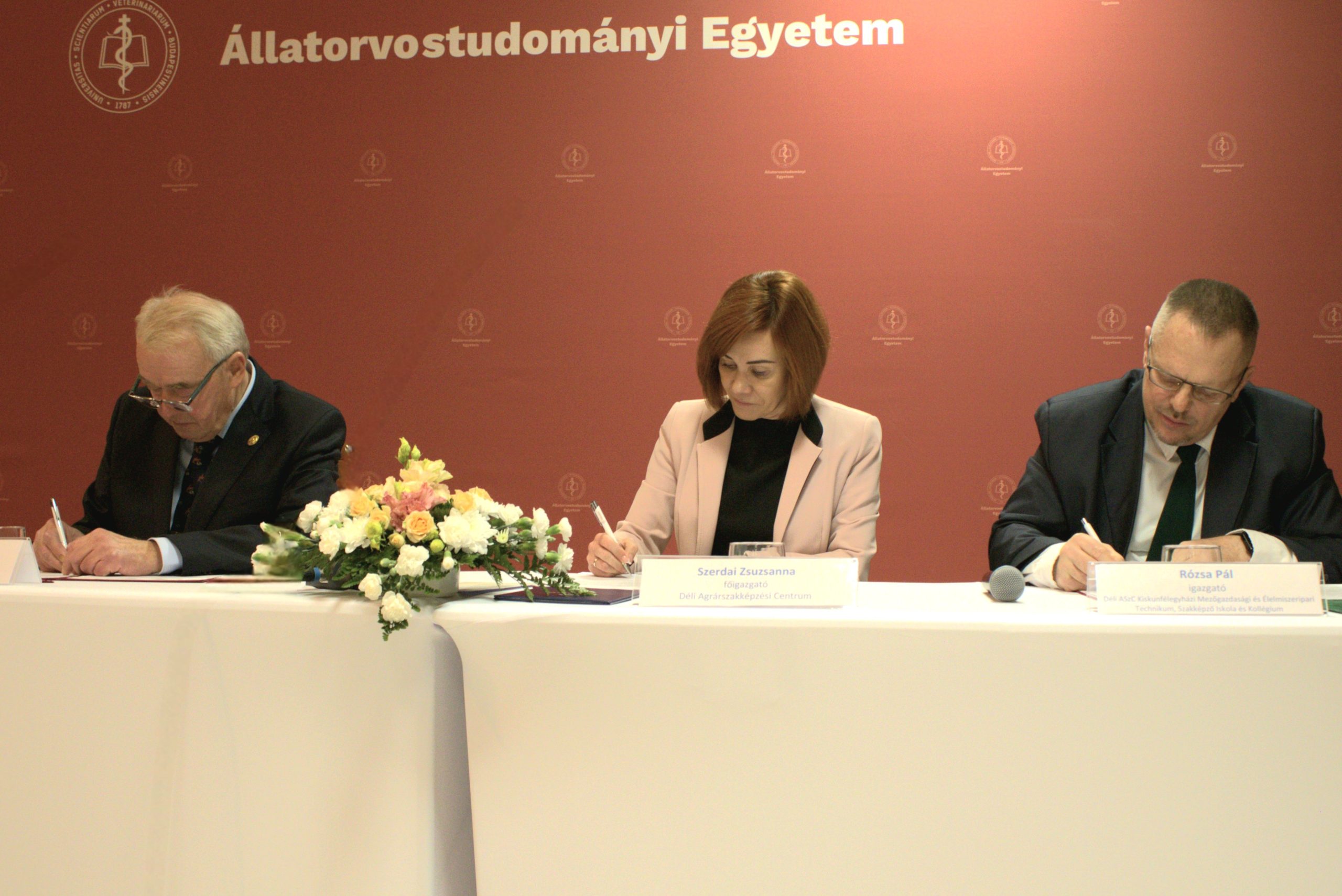 Az eseményen jelen volt Szerdai Zsuzsanna főigazgató és Rózsa Pál Csaba igazgató, Prof. Dr. Sótonyi Péter, az Állatorvostudományi Egyetem rektora, Dr. Andréka Tamás, az Agrárminisztérium közigazgatási államtitkára illetve Bagdán Boglárka főosztályvezető, duális agrárszakképzés fejlesztéséért felelős miniszteri biztos asszony. Aláírásukkal megerősítették azt, hogy a közös munka első lépése megkezdődött és célunk egy olyan képzés elindítása, amely közvetlenül hatással lesz Magyarország agrár- és élelmiszergazdaságára.