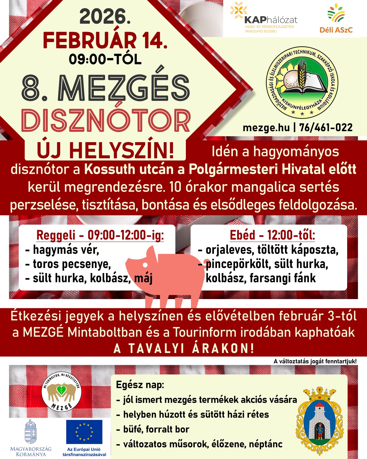Mindenki írja be a naptárába, 2026. február 14-én 8. Mezgés Disznótor!