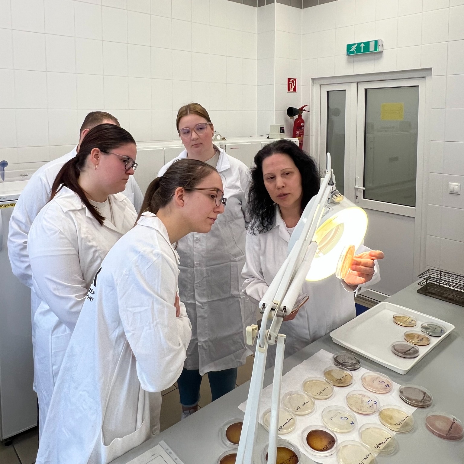 Ezt követően a tanulók a laboratóriumban is betekintést nyerhettek a gyakorlati munkába: megfigyelhették a lemezöntéses módszert, a szélesztéses (kitenyésztéses) technikát, a szelektív vizsgálatokat, valamint a határértékek meghatározásához kapcsolódó mikrobiológiai elemzéseket. A látogatás során testközelből láthatták, hogyan történik a mikroorganizmusok kimutatása és vizsgálata egy korszerű élelmiszeripari laboratóriumban.