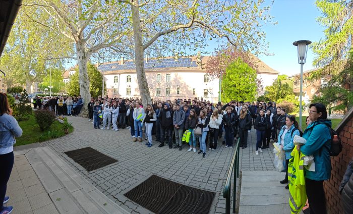 Mezgés Diáknap a tangazdaságban! Hagyományainkhoz híven idén is a Föld Napján, április 22-én tartottuk a Diáknapot. Kádár Krisztina igazgatóhelyettes megnyitó beszédét követően iskolánk diákjai megtisztították a környező utcákat a szeméttől, majd kisétáltak a Tangazdaságba, ahol saját maguk készítették el az ebédjüket bográcsban vagy grillezve. Az osztályok versenyeztek is egymással a főzéssel, kvíz kérdések megválaszolásával, és egy QR kódos ügyességi pálya minél gyorsabb végrehajtásával. A legerősebbek pedig traktorgumi átfordításban mérhették össze erejük.